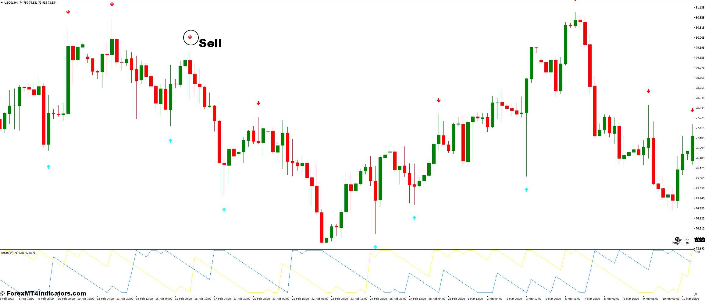 - Ensure Aroon Down has crossed above Aroon Up or is above 50, indicating bearish momentum.
