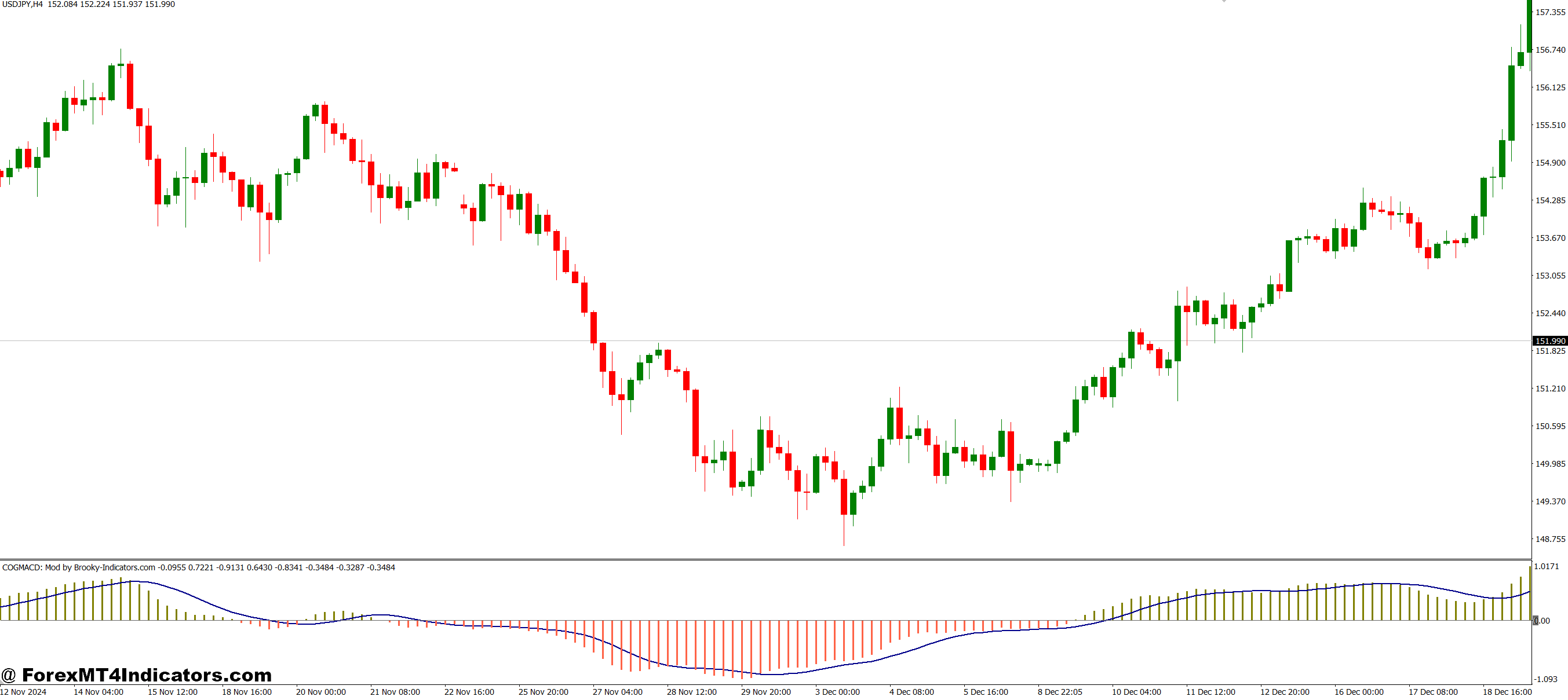 When the MACD shows momentum building in a certain direction, the COG levels give traders a visual guide of where the price may bounce or reverse. For example, if the MACD is signaling a bullish trend while the price touches the lower COG band, it can be a sign of a strong buying opportunity. Similarly, when the price approaches the upper COG band with bearish MACD confirmation, traders can prepare for possible sell setups.