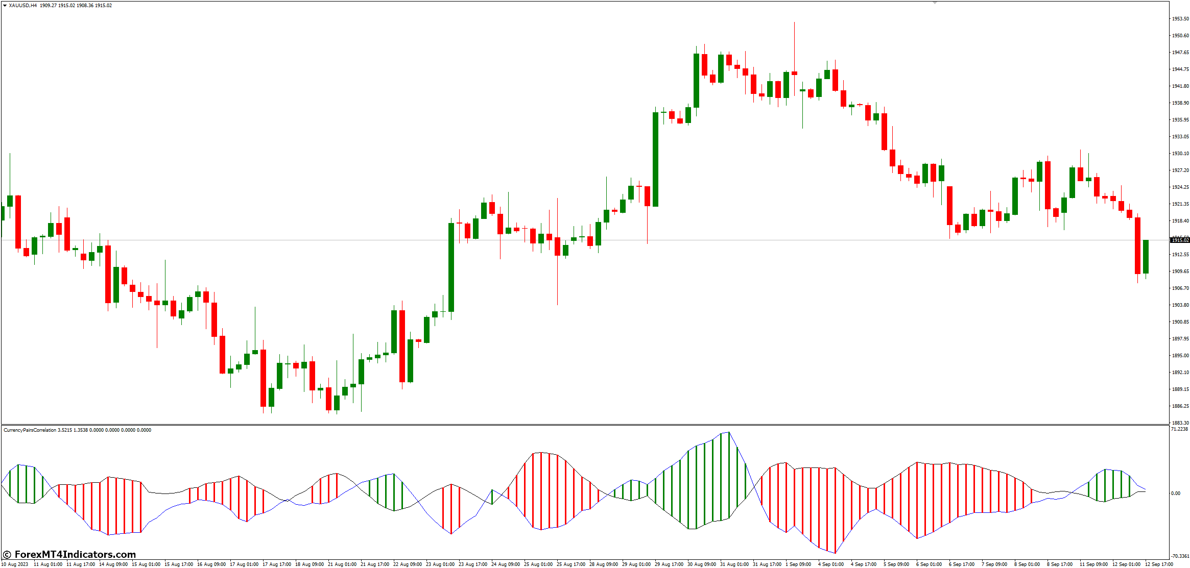 The Currency Pairs Correlation MT4 Indicator uses mathematical calculations to determine the correlation coefficient between two currency pairs. This coefficient represents the degree of correlation between the pairs, ranging from -1 to 1. A positive correlation indicates that the pairs move in the same direction, while a negative correlation suggests they move in opposite directions.