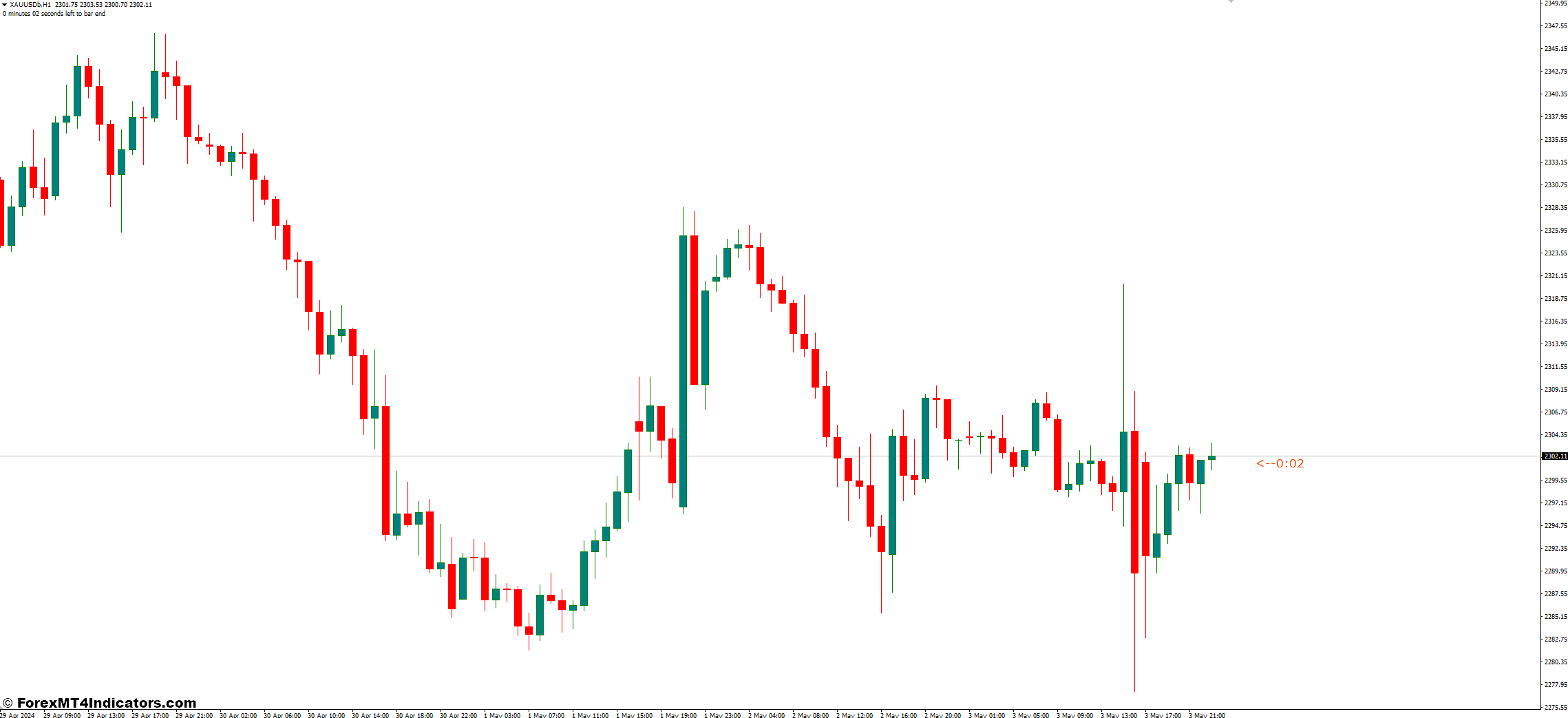 - Countdown Timer for Current Candle Closure: The core functionality of the indicator is a user-friendly countdown timer displayed directly on your MT4 chart. This timer constantly updates, reflecting the remaining time until the current candle closes.