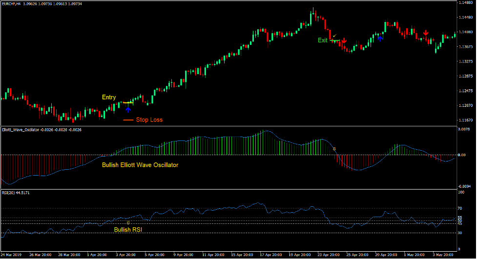 Seasoned Elliott Wave traders can effectively spot such waves. However, new traders might find it difficult to read the cyclical patterns of the forex market due to its volatility. Elliott Wave Forex Swing Trading Strategy simplifies the process using an indicator which is based on the Elliott Wave theory.