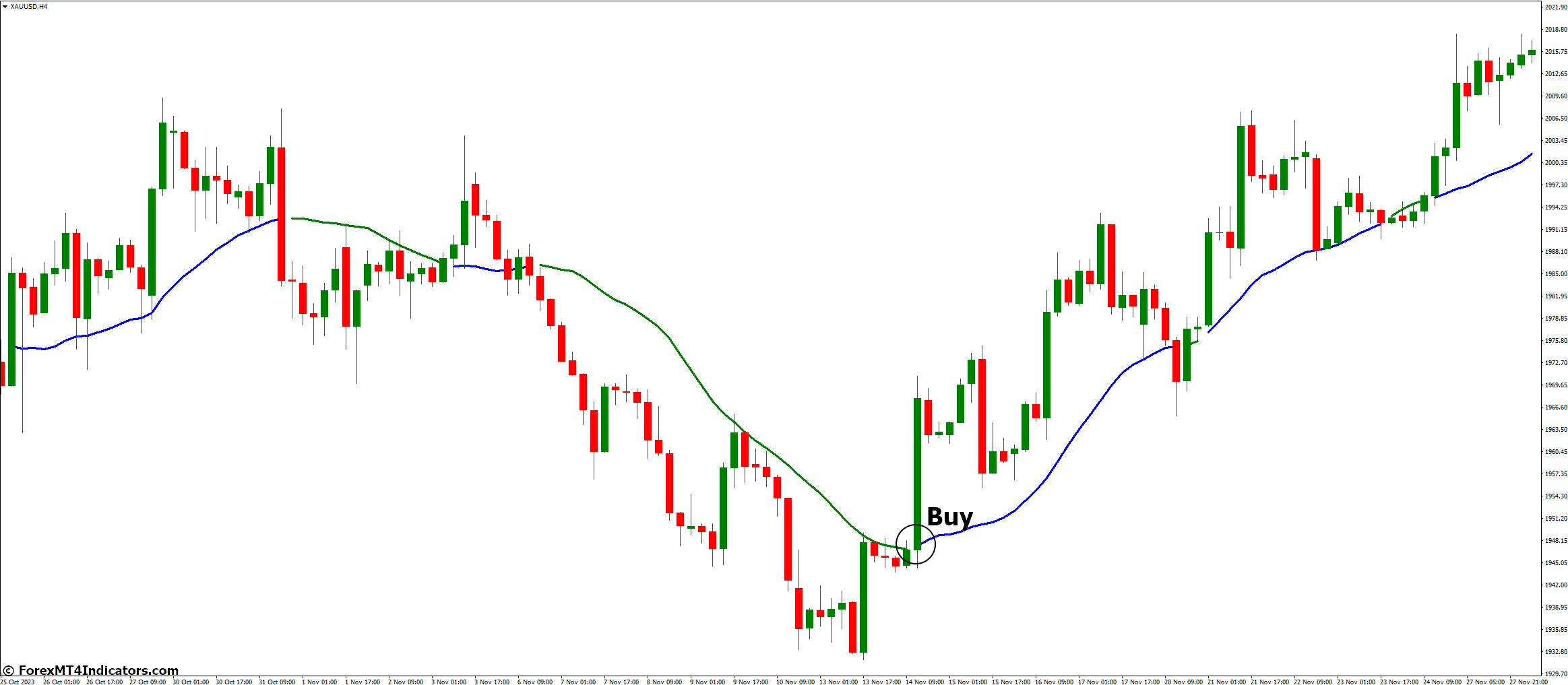 - Look for a strong bullish signal on the Forex Line Indicator.