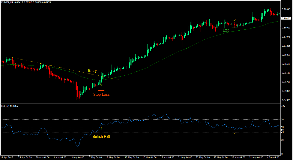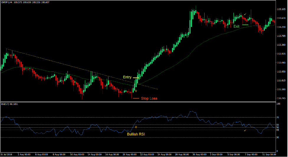 Heiken Ashi RSI Forex Trading Strategy is a systematic trend reversal strategy that produces trade setups during breakouts of an opposing support or resistance line and confirms trade setups based on a couple of trend and momentum indicators.