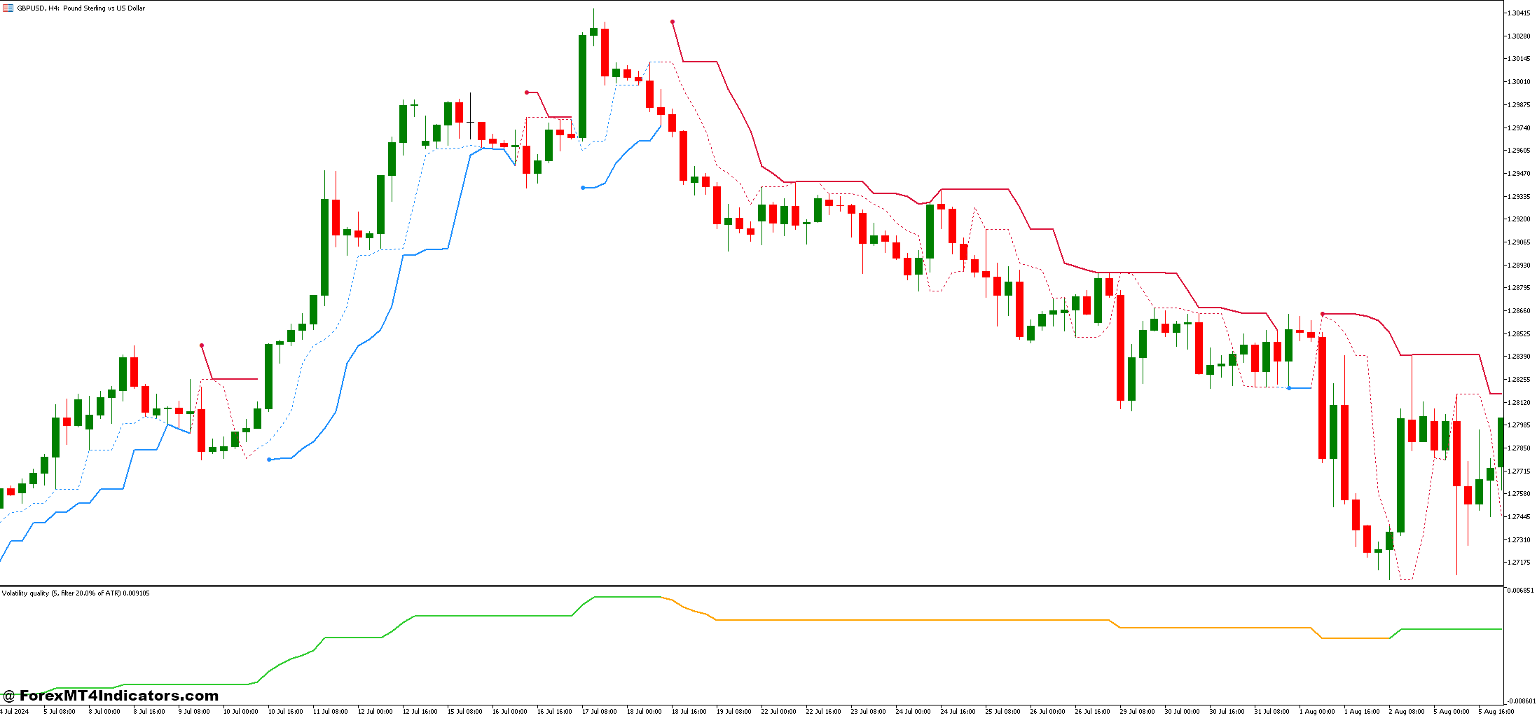 At the heart of this strategy is the idea that both trend direction and volatility play critical roles in trading success. While trend lines can give a clear indication of price direction, volatility tells traders about the strength and likelihood of that trend continuing. The Volatility Quality indicator adds a layer of confirmation by helping to assess whether the market is moving in a sustainable way or is prone to sudden, unreliable shifts. This dual approach can significantly reduce false signals, giving traders a better chance to align their trades with market momentum.