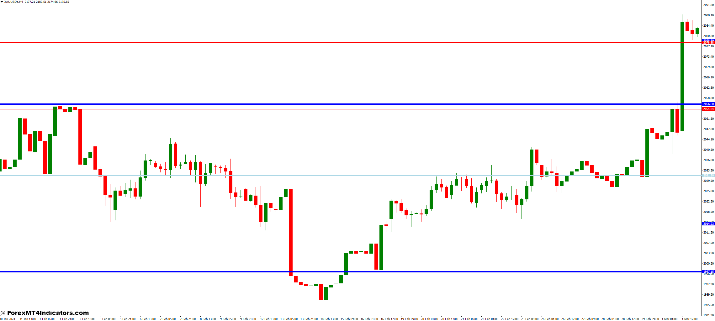 Once configured, your custom indicator will display pivot point levels directly on your MT4 chart. These levels typically appear as horizontal lines, with support levels plotted below the current price and resistance levels plotted above.