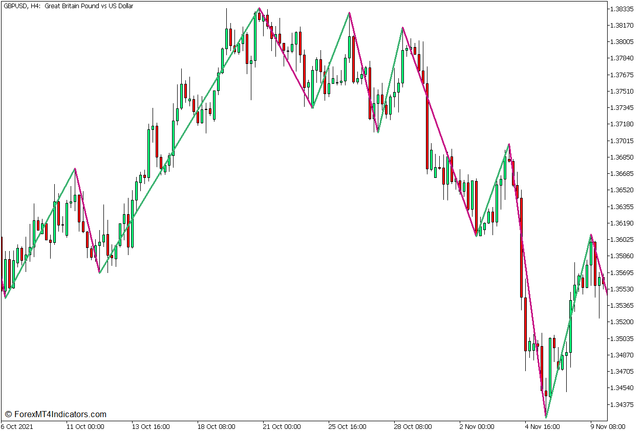 The Zigzag Color Indicator is a modified version of the classic Zigzag Indicator. It is a technical trading tool that allows traders to objectively identify the swing highs and swing lows of price action, which is vital for visualizing the market structure of any tradeable instrument.