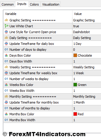 - Types of Time Boxes Offered (Daily, Weekly, Monthly): As mentioned earlier, the indicator provides three distinct time box options: daily, weekly, and monthly. Each box visually represents the opening and closing price of that specific timeframe.