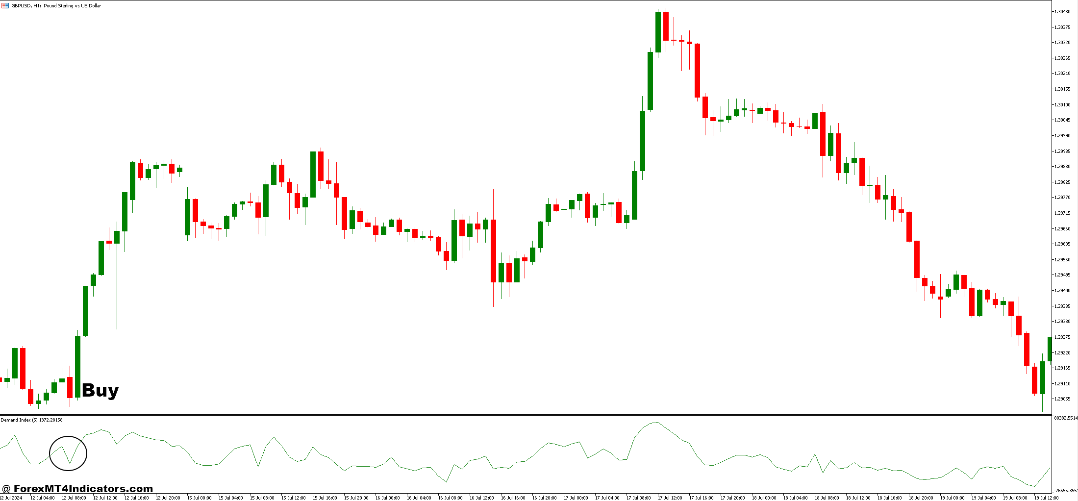 - Check for a divergence: if prices are rising and the Demand Index confirms strength, it supports the buy decision.