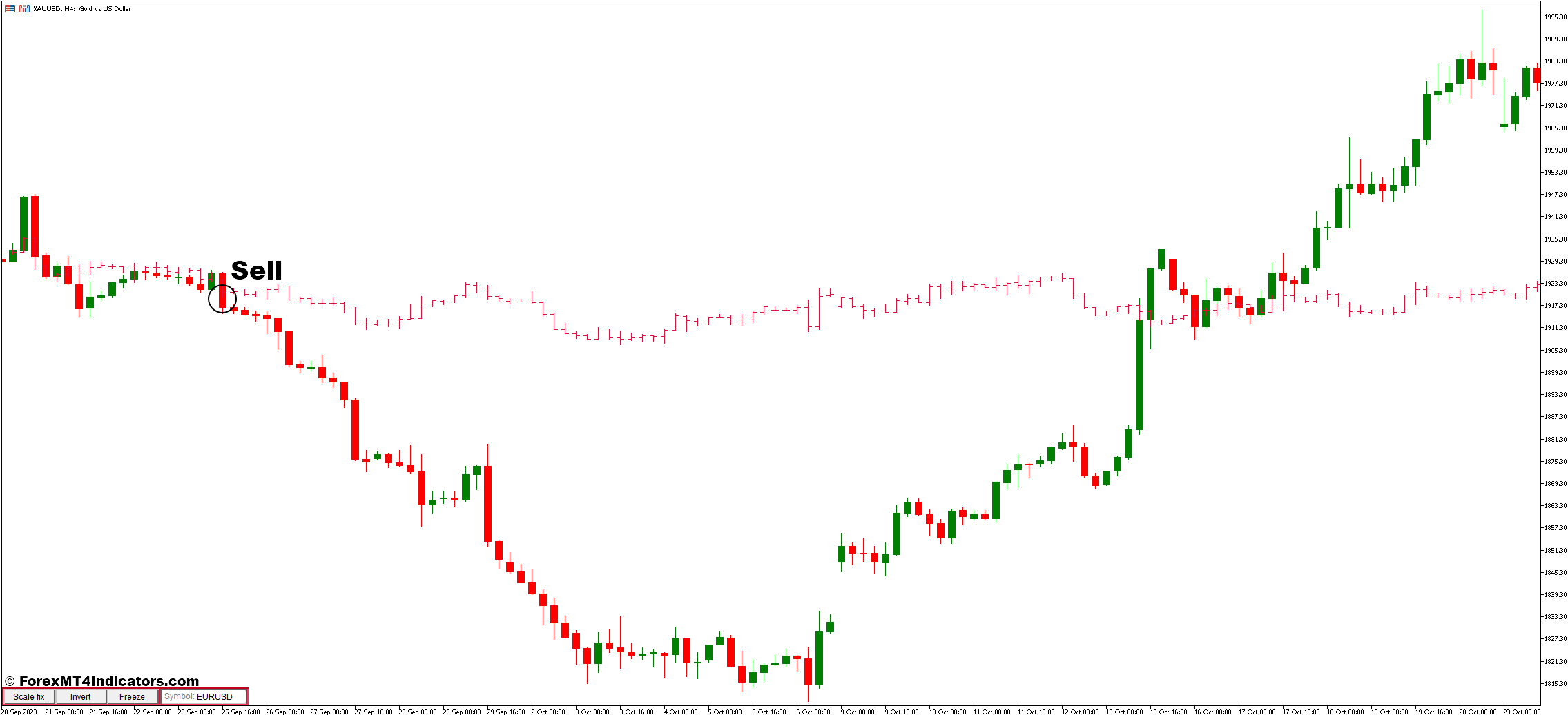 - Confirm a downtrend using i-Symbol indicator (e.g., lower highs and lower lows).