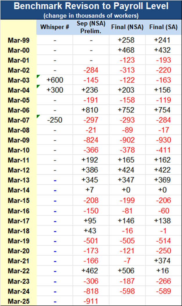 The early guidance is usually quite close to the final result. Last year, guidance of -501k for March ’19 translated to a -505k revision in the NSA level and an SA revision of -514k.