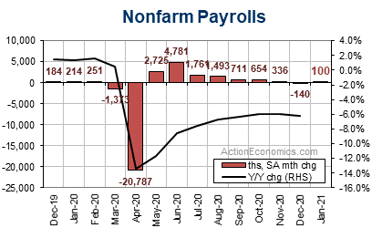 Today’s ADP overshoot of payrolls estimate signals upside risk for Friday, especially given the pattern of big ADP undershoots of the BLS payroll data and other labor market indicators since the pandemic began. The ADP reported private payrolls bounced 174k in January, better than expected. The -123k December decline was revised up to a -78k decline. A lot of the bounce was in the service sector where employment increased 156k, with the goods sector adding 19k workers. In the service sector, education/health jobs rose 54k, with a 40k gain in professional/business services, while leisure/hospitality adding 35k. Trade/transport employment increased 16k. There was an 18k gain in construction.