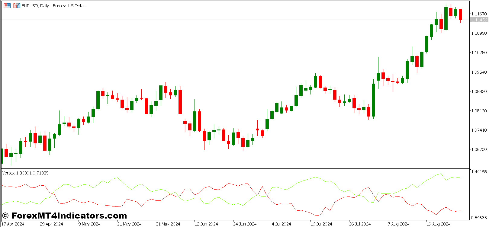 - Enter Trade: Place a buy order when both indicators align—Vortex 2 showing a bullish trend and XXDPO Candle confirming positive momentum.