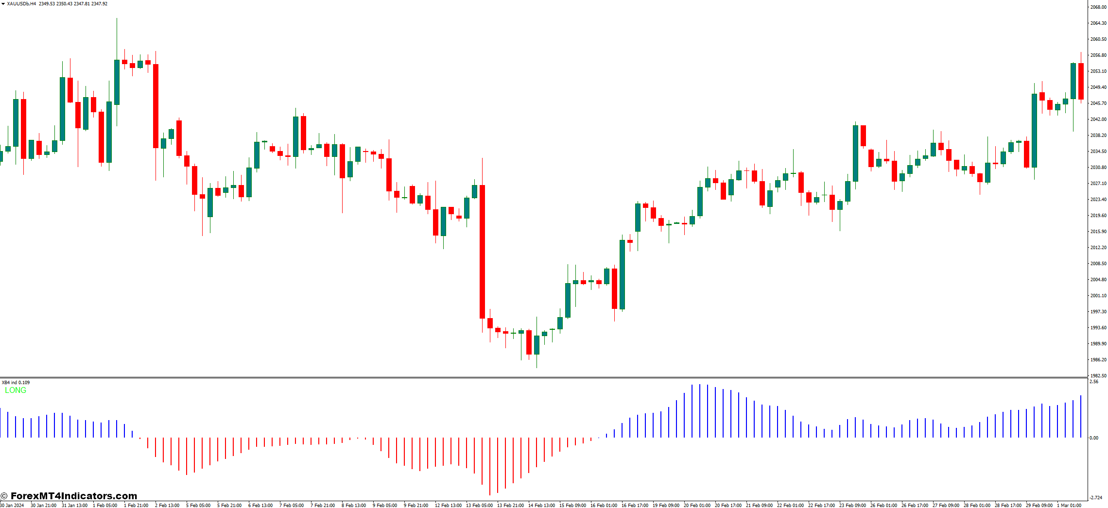 - How the indicator generates signals: The XB4 generates visual signals on your MT4 chart, typically in the form of bars or lines. These signals may change color or direction based on the indicator’s calculations, potentially offering buy or sell suggestions.
